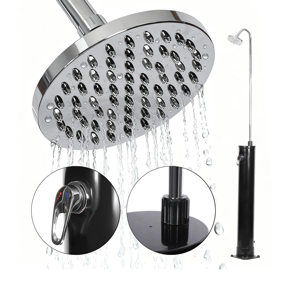 Lorsqu'elle est exposée à un fort soleil, l'eau du tuyau de douche de 18/20 litres peut naturellement chauffer jusqu'à environ 60 °C sans avoir besoin d'électricité, offrant ainsi une solution de douche pratique et écologique. Fixez simplement un tuyau d’arrosage ordinaire pour remplir facilement le tuyau de douche. Fabriquée en plastique résistant aux UV, cette douche solaire de piscine de jardin extérieure à corps rond LY18L01-B 18L est conçue pour la durabilité et peut être facilement démontée et transportée en cas de besoin. Sa base solide en acier inoxydable, PVC, ABS, cuivre et métal assure une stabilité fiable, maintenant l'unité solidement en place même lors d'une utilisation fréquente. De plus, il dispose d'un connecteur de tuyau d'arrosage standard pour un remplissage rapide et d'un bouchon de vidange qui permet de vider facilement le tuyau de douche, facilitant ainsi la préparation de la douche pour le stockage hivernal.