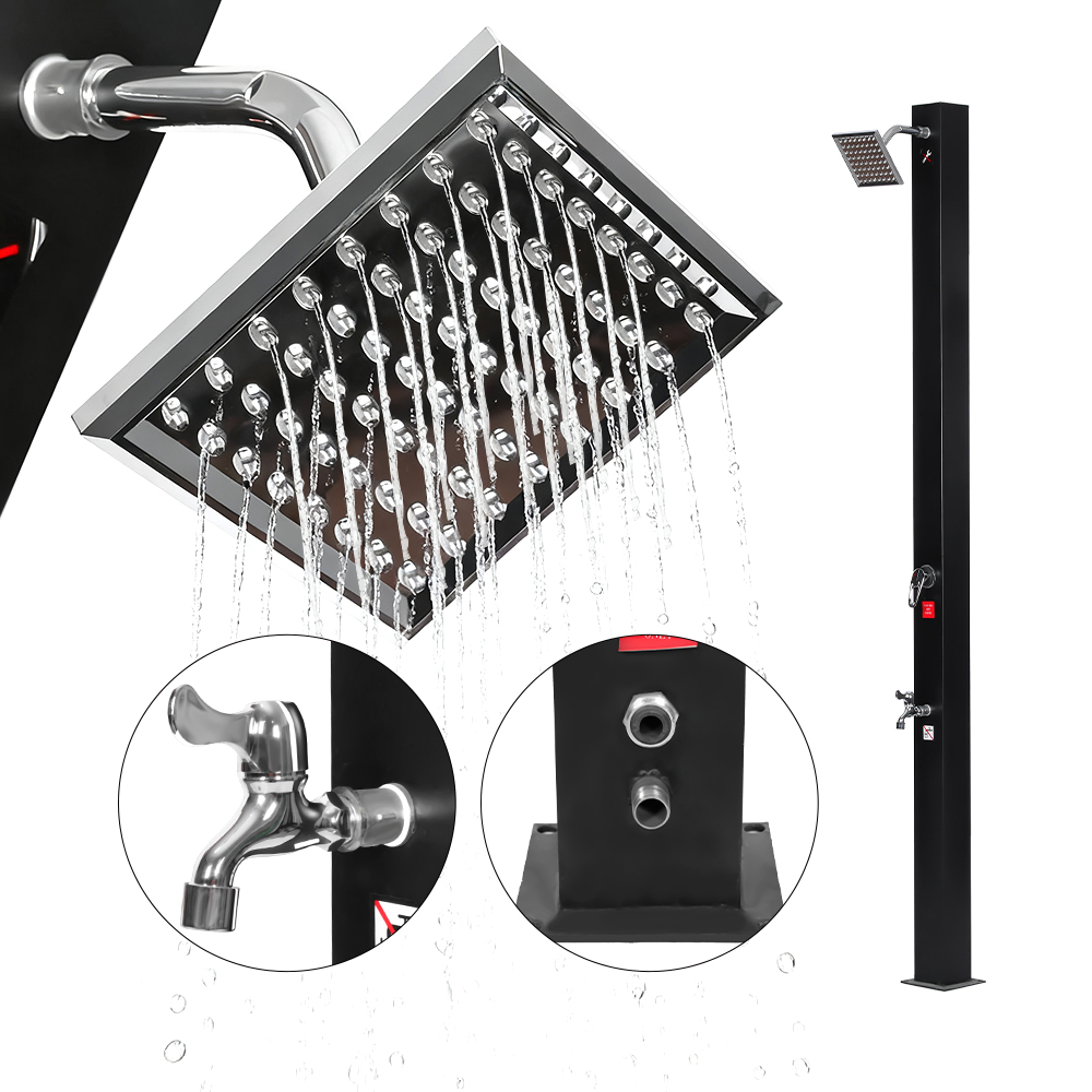 Cette douche solaire intégrée réglable anti-UV LY18L08-SS est soigneusement conçue pour le confort et la praticité. Sa pomme de douche à effet pluie de taille généreuse, équipée d'une rotule intégrée, peut pivoter jusqu'à 180°, vous permettant d'ajuster l'angle pour une expérience de douche agréable et rafraîchissante. Fabriquée en plastique résistant aux UV, l'unité est durable et peut être rapidement démontée pour un transport ou un stockage facile lorsqu'elle n'est pas utilisée. La base robuste, composée d'acier inoxydable, d'ABS, de cuivre et d'autres matériaux fiables, garantit une configuration sûre et stable même sur diverses surfaces extérieures. L'utilisation de la douche est simple—remplissez simplement le tuyau de douche avec un tuyau d'arrosage standard, laissez le soleil chauffer naturellement l'eau, puis utilisez le robinet intégré pour ajuster la température selon vos préférences, créant ainsi une expérience de douche extérieure pratique et agréable.