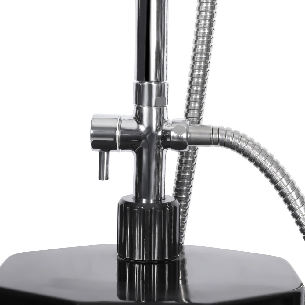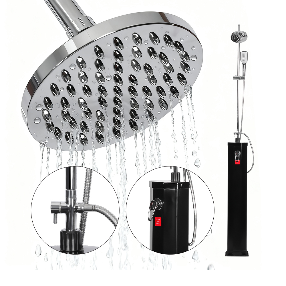Cette douche solaire en PVC au bord de la piscine LY18L09-B 18L avec douche à tête mobile en acier inoxydable est conçue pour apporter confort et détente à une variété de environnements extérieurs, que ce soit dans le jardin, au bord de la piscine ou lors de voyages de camping, offrant une solution moderne pour profiter de l'eau chaude sans avoir besoin de sources d'énergie externes. Il est doté d'une pomme de douche à effet pluie surdimensionnée avec une rotule intégrée qui permet un réglage facile jusqu'à 180°, garantissant une flexibilité d'utilisation et simplifiant la configuration. La pomme de douche flexible de style forêt tropicale améliore l'expérience en vous permettant de contrôler facilement le débit d'eau, créant une sensation apaisante, semblable à celle d'un spa, semblable à celle de se tenir sous une cascade naturelle. Ensemble, ces fonctionnalités offrent une expérience de douche rafraîchissante et personnalisable, ce qui la rend idéale pour tous ceux qui recherchent à la fois praticité et détente en plein air.