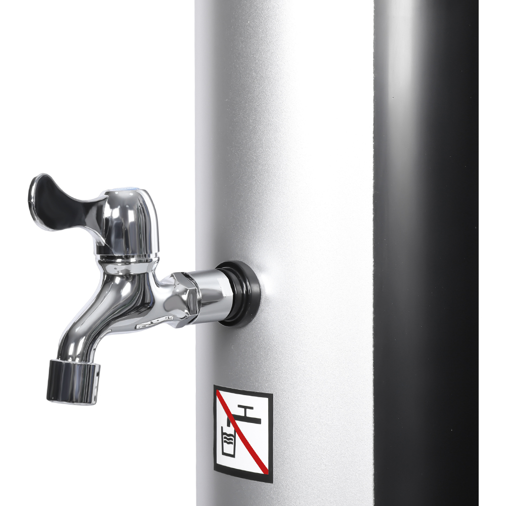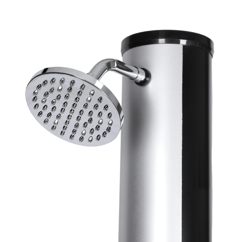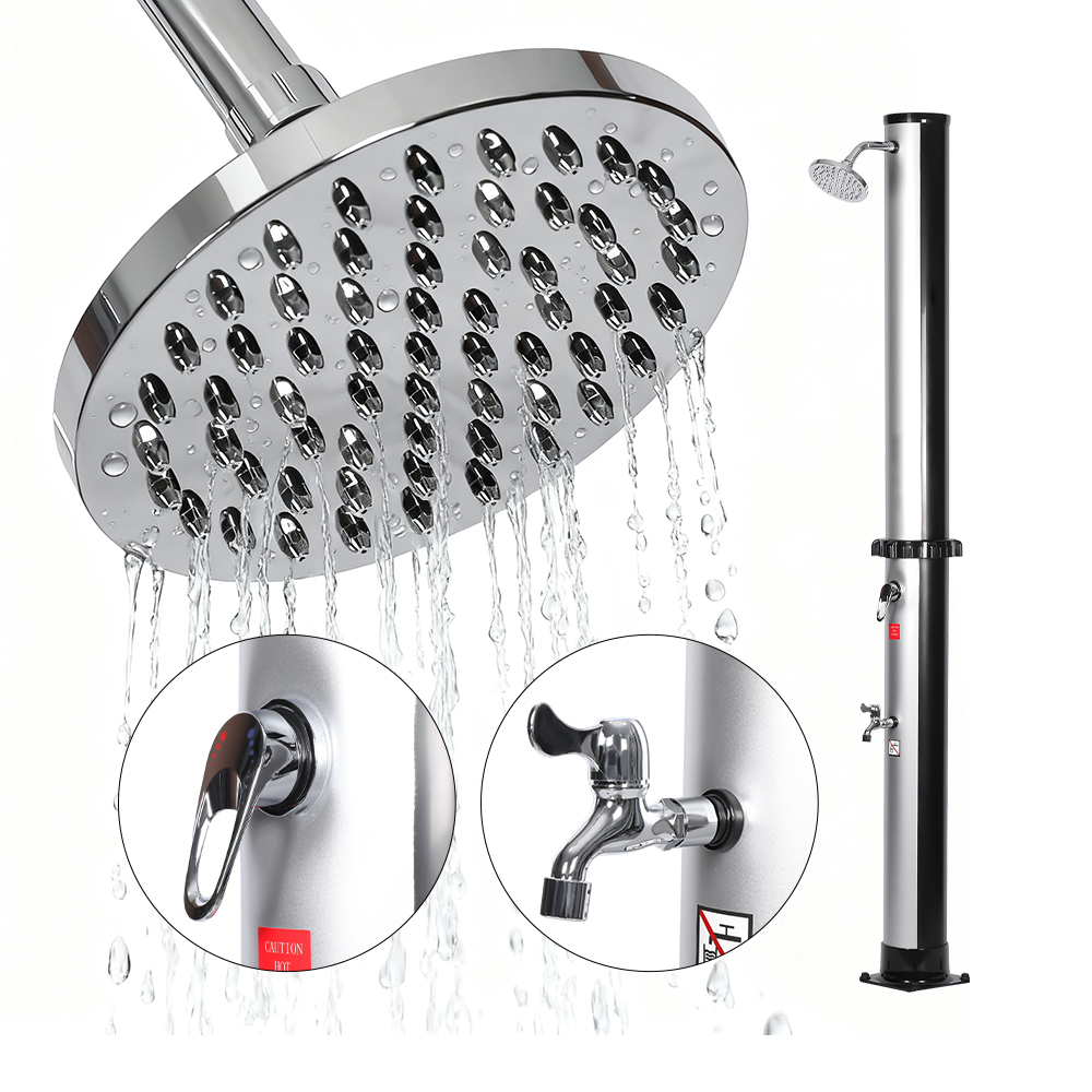 Cette douche solaire réglable et étanche LY35L02-CR allie praticité et confort, dotée d'un grand tuyau de douche qui chauffe jusqu'à environ 60 °C en utilisant uniquement la lumière du soleil, éliminant ainsi le besoin d'électricité. Fixez simplement un tuyau d'arrosage ordinaire pour remplir le tuyau de douche, permettant ainsi à toute la famille de profiter facilement d'une douche extérieure rafraîchissante dans le jardin, au bord de la piscine ou en camping. Un plateau en métal pratique permet de garder facilement à portée de main les produits essentiels au bain tels que le savon ou le shampoing, tandis qu'un canal de drainage soigneusement conçu au fond empêche l'accumulation d'eau, gardant la zone propre et sûre. Ajoutant au confort, la pomme de douche réglable permet un contrôle flexible du jet d'eau, vous permettant d'adapter le débit à vos préférences personnelles. Son spray de style forêt tropicale offre une expérience de douche apaisante et naturelle, transformant chaque rinçage en un moment de détente.