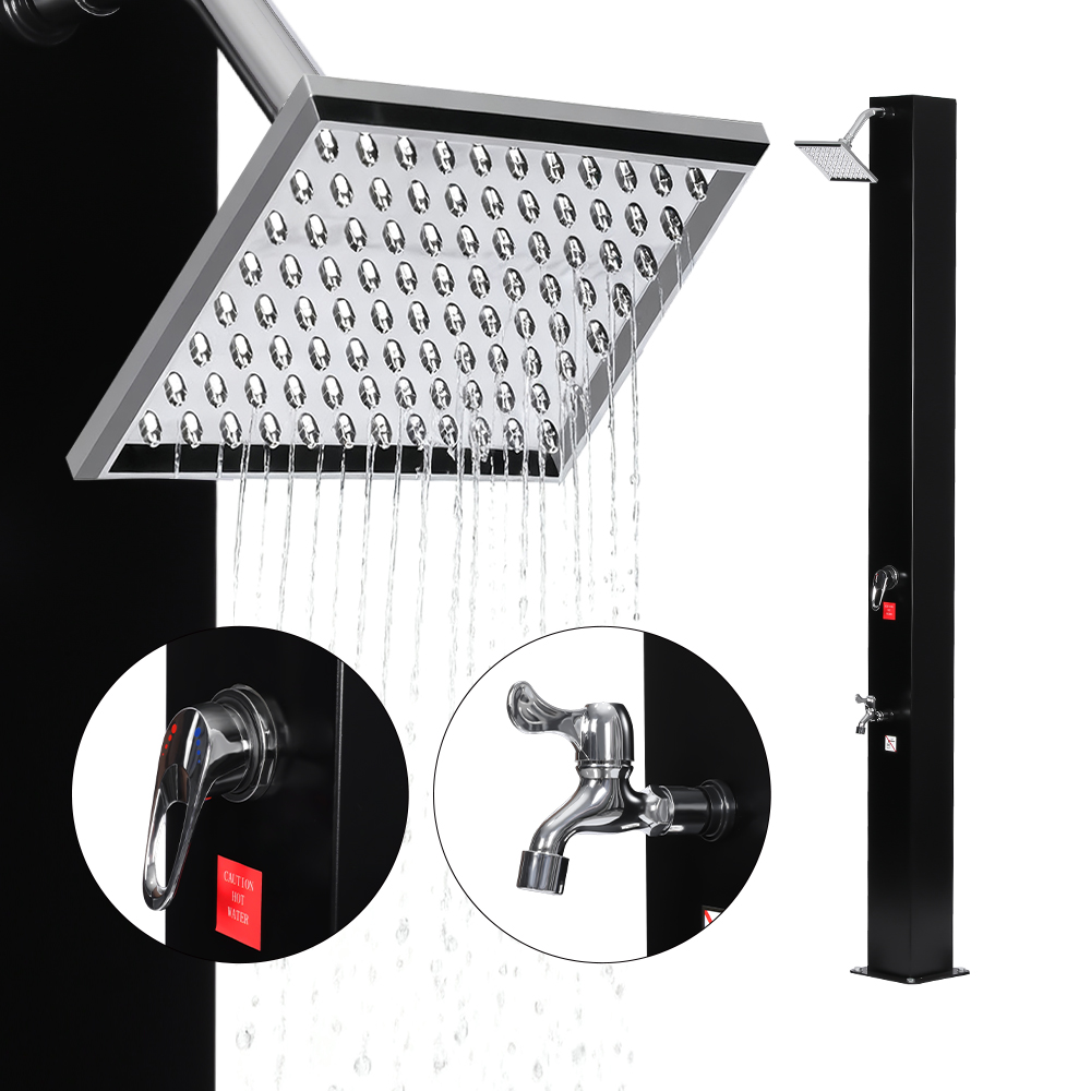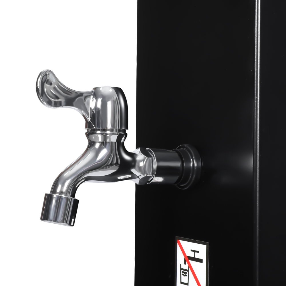 Cette douche solaire extérieure de haute capacité LY35L04-SS est conçue pour offrir une expérience de bain extérieur confortable et pratique en exploitant la puissance de la lumière du soleil pour chauffer l'eau jusqu'à environ 60 °C, éliminant ainsi le besoin d'électricité. Le remplissage du tuyau de douche se fait sans effort—il suffit de connecter un tuyau d'arrosage standard et la douche est prête à l'emploi. Pour plus de commodité, un support métallique intégré maintient les essentiels de la douche tels que le gel ou le shampoing à portée de main, tandis qu'un trou de drainage soigneusement placé au fond assure une élimination rapide et efficace de l'eau, évitant ainsi l'eau stagnante. L'ensemble de l'unité est assemblé en vissant solidement les pièces ensemble, garantissant ainsi une structure stable, et pour un fonctionnement sûr dans des environnements extérieurs, un ancrage au sol approprié est nécessaire. Pour rendre l'installation et l'utilisation simples, des instructions multilingues complètes sont incluses, les rendant accessibles aux utilisateurs de diverses régions.