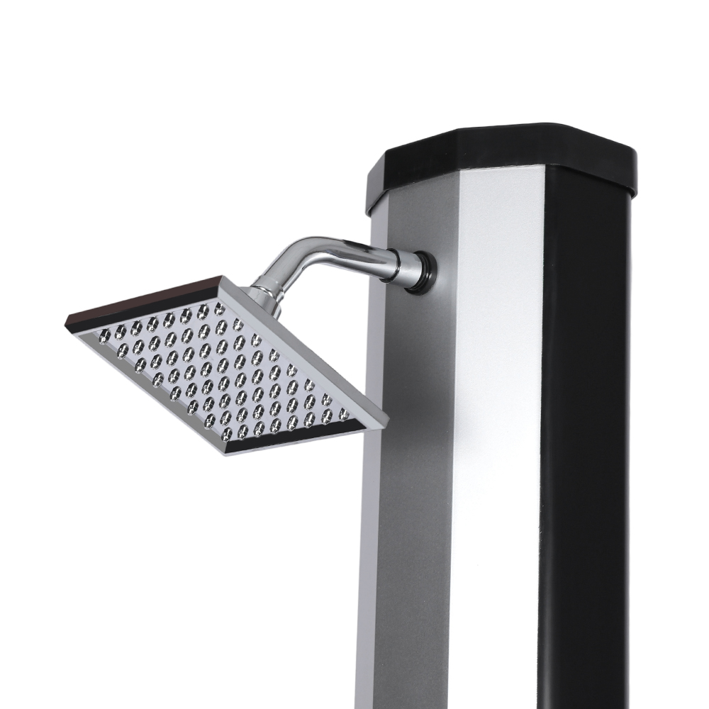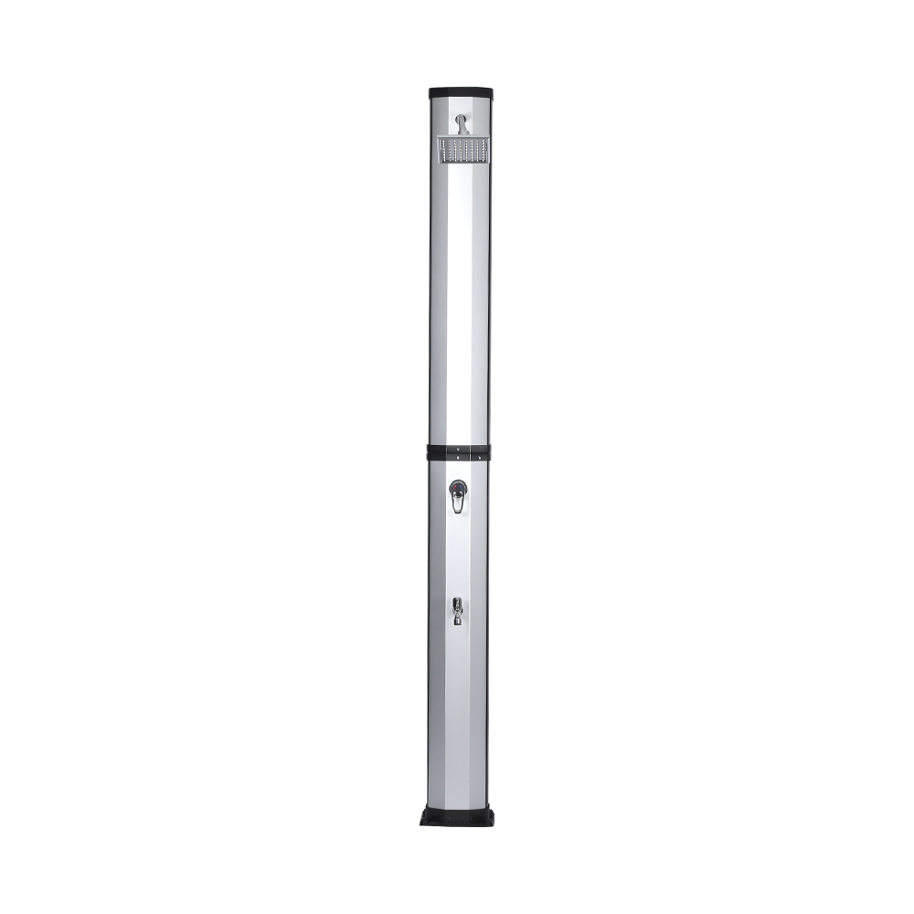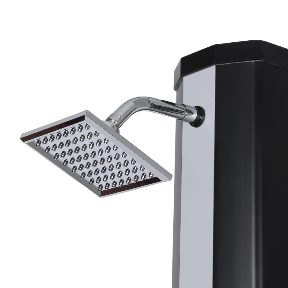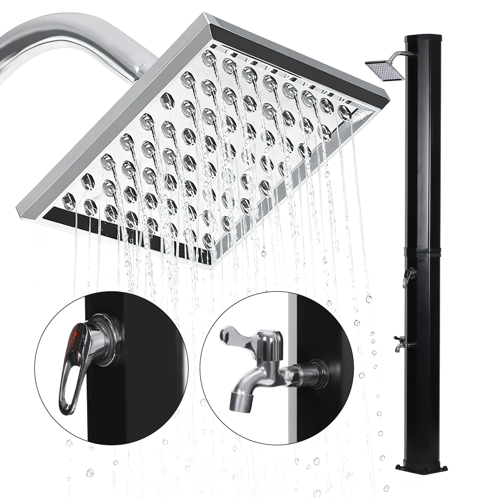Cette douche solaire flexible et simple LY35L08 est conçue à la fois pour la polyvalence et la praticité. Sa large pomme de douche à effet pluie pivote non seulement à 360° pour un effet de refroidissement complet, mais permet également un réglage flexible du débit d'eau en fonction de vos préférences, créant une expérience de douche relaxante similaire à celle d'une cascade naturelle. L'installation est simple et le robinet pratique actionné au pied permet un rinçage facile par endroits pour un rafraîchissement supplémentaire lorsqu'une douche complète du corps n'est pas nécessaire. De plus, l'unité de douche est dotée d'un raccord de tuyau d'arrosage standard pour un remplissage rapide et facile, et un bouchon de vidange permet de vider facilement le tuyau de douche avant l'hiver, garantissant ainsi sécurité et fiabilité lorsqu'il n'est pas utilisé et prolongeant sa durée de vie.
