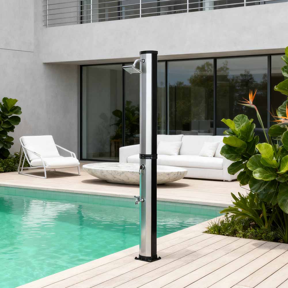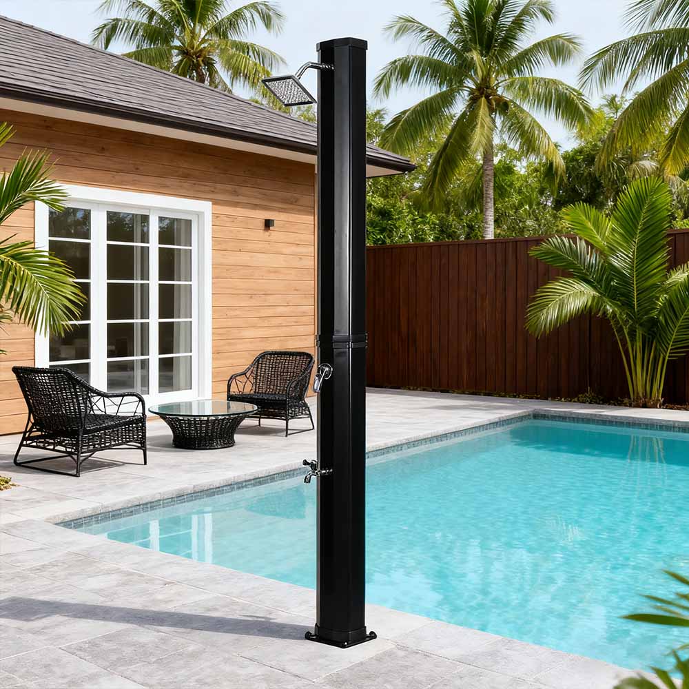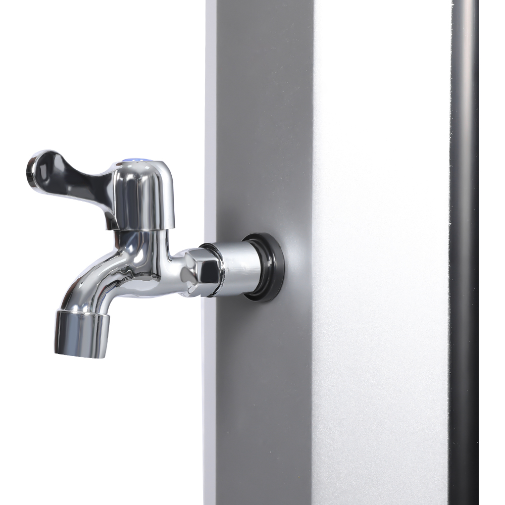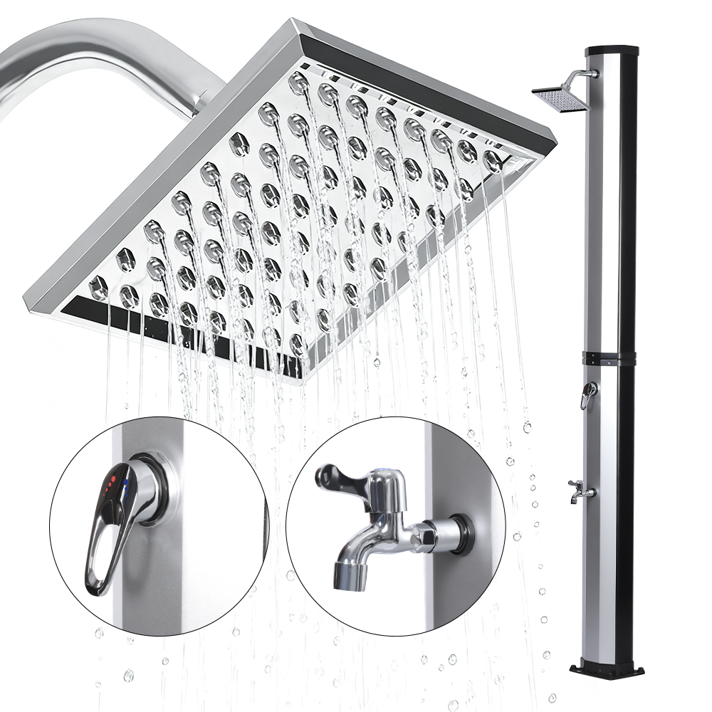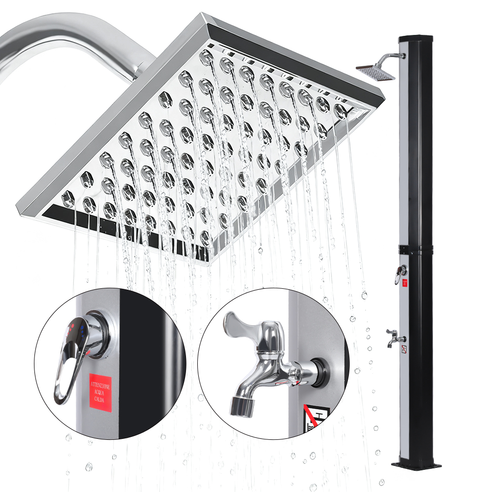 Cette douche solaire flexible et simple LY35L08 est conçue à la fois pour la polyvalence et la praticité. Sa large pomme de douche à effet pluie pivote non seulement à 360° pour un effet de refroidissement complet, mais permet également un réglage flexible du débit d'eau en fonction de vos préférences, créant une expérience de douche relaxante similaire à celle d'une cascade naturelle. L'installation est simple et le robinet pratique actionné au pied permet un rinçage facile par endroits pour un rafraîchissement supplémentaire lorsqu'une douche complète du corps n'est pas nécessaire. De plus, l'unité de douche est dotée d'un raccord de tuyau d'arrosage standard pour un remplissage rapide et facile, et un bouchon de vidange permet de vider facilement le tuyau de douche avant l'hiver, garantissant ainsi sécurité et fiabilité lorsqu'il n'est pas utilisé et prolongeant sa durée de vie.