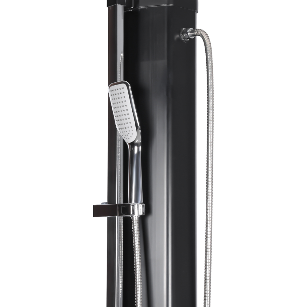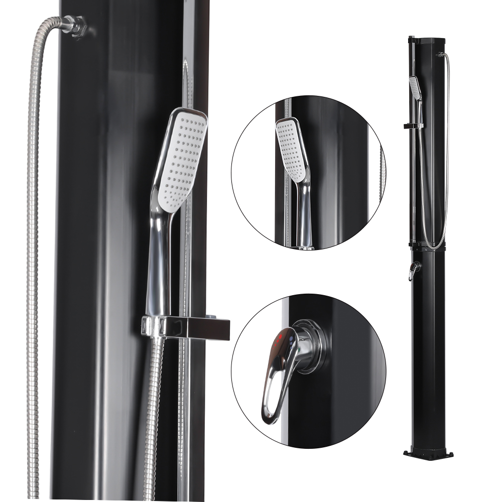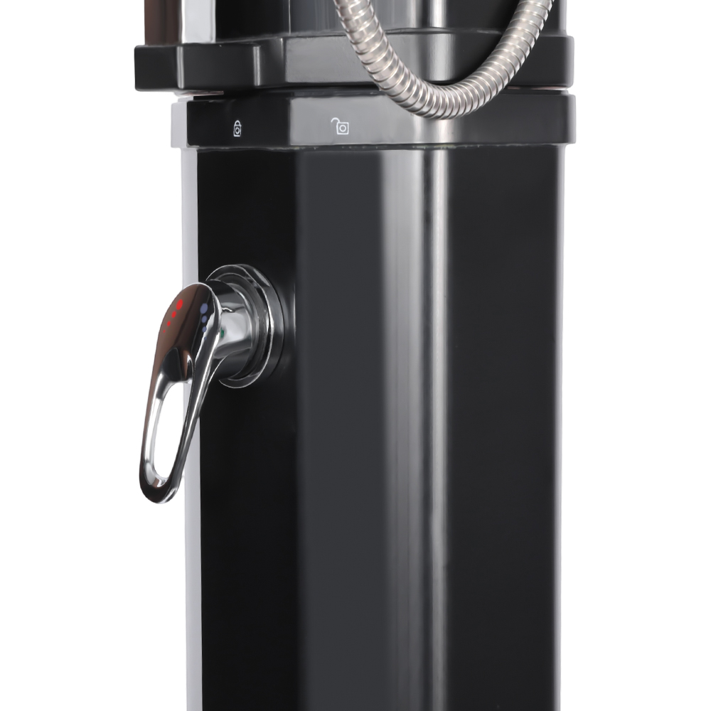 Cette douche solaire de jardin de grande capacité stable et efficace LY35L08-HB fonctionne efficacement en utilisant la lumière du soleil. Son grand tuyau de douche de 35 litres chauffe l’eau à environ 60°C en plein soleil. Le remplissage est simple, ne nécessite aucune électricité et peut être facilement réalisé en se connectant à un tuyau d'arrosage standard. Sa grande pomme de douche à effet pluie offre une expérience de refroidissement confortable et sa rotule intégrée lui permet de pivoter jusqu'à 180° pour différents angles. L'installation est également très pratique. La structure globale est constituée de plastique durable et résistant aux UV, résistant efficacement à une exposition extérieure prolongée. La pomme de douche se démonte rapidement pour un transport facile entre les emplacements ou un stockage hors saison. Une base métallique robuste assure stabilité et sécurité une fois installée, vous permettant de profiter d'une douche extérieure confortable dans votre jardin, au bord de la piscine ou au camping.