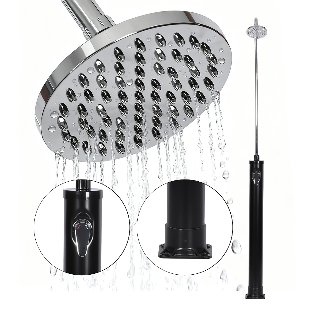 Cette douche solaire de jardin extérieure pour piscine LY08L02 8L est une solution idéale pour une utilisation en extérieur, que ce soit dans le jardin, au bord de la piscine ou lors de voyages de camping. Alimenté uniquement par la lumière du soleil, il dispose d'un tuyau de douche de 8 litres qui chauffe l'eau jusqu'à 60°C, sans avoir besoin d'électricité. Le système est conçu pour être convivial, avec un robinet mélangeur métallique à levier unique qui mélange l'eau chaude du tuyau de douche avec l'eau froide du tuyau d'arrosage, permettant un réglage fluide et continu de la température. La base robuste en acier inoxydable garantit que l'unité reste stable et solidement en place, offrant des performances fiables pour vos besoins en eau extérieure. Connectez simplement un tuyau d'arrosage standard pour remplir le tuyau de douche et profiter de l'eau chaude où que vous soyez.